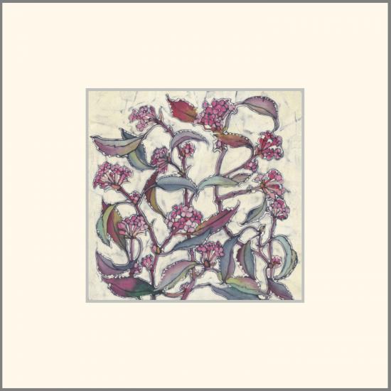 Batik is a complicated ancient technique that originated in the Far East. A picture is drawn freehand onto the stretched fabric and then dyes and wax resist are applied to, in this case pure cotton, until the design is completed. The wax is then removed revealing the painting.