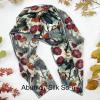 Red and orange flowers will add a pop of colour, while the soft greens would compliment a plain dark green coat or jacket. Silky soft and drapey, any age group could wear the Abutilon scarf.