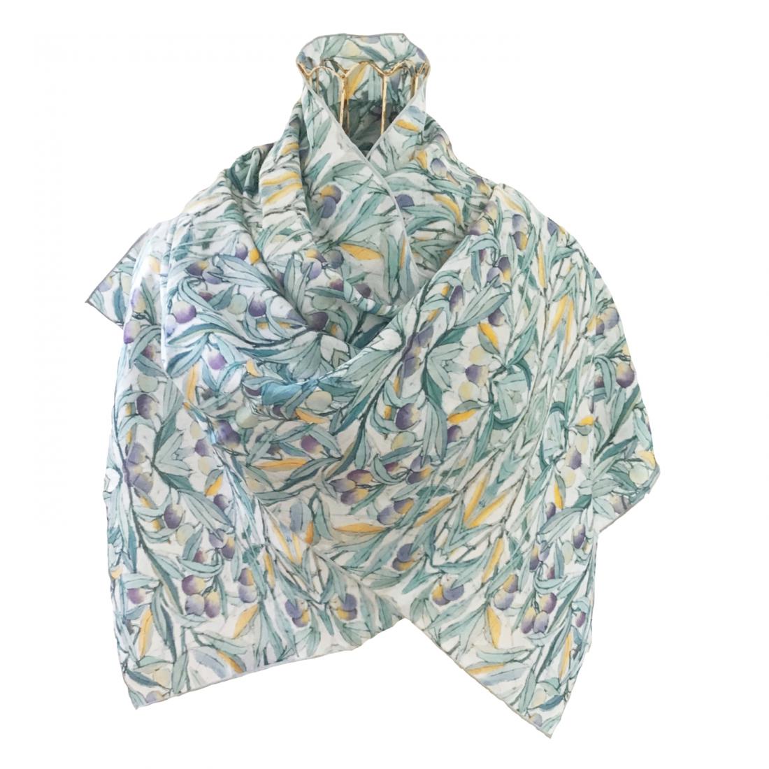 This is one of our beautiful new silk scarves. Digitally printed in the UK onto a slightly lighter weight pure silk crepe de chine, the colours are a touch stronger and permeate the fabric so both sides have the same colour values, also the hems are hand rolled. Of course they are still generated from one of my original Batik paintings. I hope you like them.